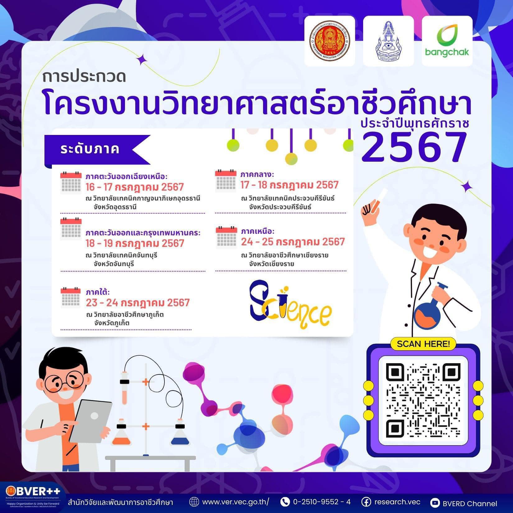 สำนักงานคณะกรรมการการอาชีวศึกษา ร่วมกับ สมาคมวิทยาศาสตร์แห่งประเทศไทยในพระบรมราชูปถัมภ์ และบริษัท บางจาก คอร์ปอเรชั่น จำกัด (มหาชน) ดำเนินงาน “การประกวดโครงงานวิทยาศาสตร์อาชีวศึกษา ประจำปีพุทธศักราช 2567”