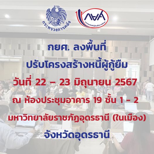 กยศ. ร่วมกับกรมคุ้มครองสิทธิและเสรีภาพ และกรมบังคับคดี ปรับโครงสร้างหนี้ผู้กู้ยืม จ.อุดรธานี ในวันที่ 22-23 มิ.ย.67