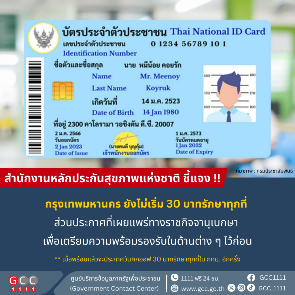 สปสช.แจง กทม.ยังไม่เริ่ม 30 บาทรักษาทุกที่ ประกาศที่เผยแพร่ฯ เพื่อเตรียมความพร้อมรองรับในด้านต่างๆ ไว้ก่อน