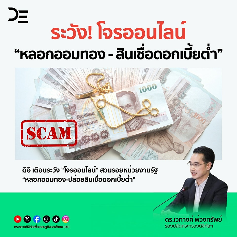 กระทรวงดิจิทัลเพื่อเศรษฐกิจและสังคม (ดีอี) ตรวจพบข่าวปลอมที่เกี่ยวข้องกับอาชญากรรมออนไลน์รายสัปดาห์ ที่ประชาชนให้ความสนใจสูงสุดอันดับที่ 1 เรื่อง “ธ.อิสลาม ช่วยเหลือประชาชน รับรวมหนี้ ต่อธุรกิจ ปิดหนี้ และหมุนธุรกิจ” รองลงมาคือเรื่อง “กรุงไทยปล่อยสินเชื่อ ผ่านเพจสินเชื่อส่วนบุคคล SME” โดยขอให้ประชาชนอย่าหลงเชื่อข่าวปลอม เลือกเชื่อ เลือกแชร์ ข้อมูลที่เป็นประโยชน์ หวั่นตกเป็นเหยื่อของมิจฉาชีพ หรืออาจทำให้เกิดความเสียหายต่อทรัพย์สิน และมีผลกระทบต่อประชาชนในสังคมเป็นวงกว้าง