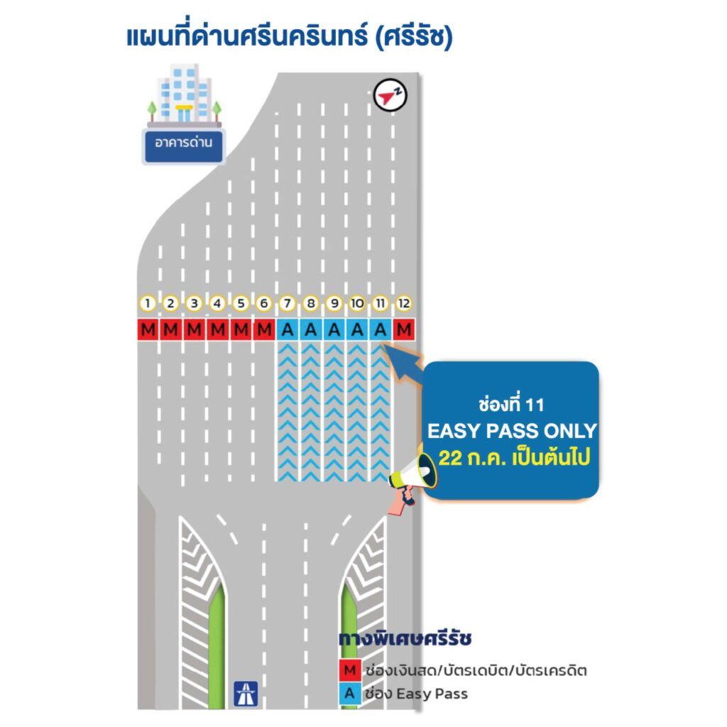 การทางพิเศษแห่งประเทศไทย จะดำเนินการเพิ่มช่องเก็บค่าผ่านทางพิเศษแบบอัตโนมัติ (ETC) เพื่อรองรับรถผู้ใช้ Easy Pass บนทางพิเศษเฉลิมมหานคร และทางพิเศษศรีรัชที่เพิ่มมากขึ้น เพื่ออำนวยความสะดวกแก่ผู้ใช้ทาง โดยจะเริ่มเปิดให้บริการ ในวันพุธที่ 24 กรกฎาคม 2567 ตั้งแต่เวลา 00.01 น. เป็นต้นไป จำนวน 11 ด่านฯ 11 ช่องทางฯ
