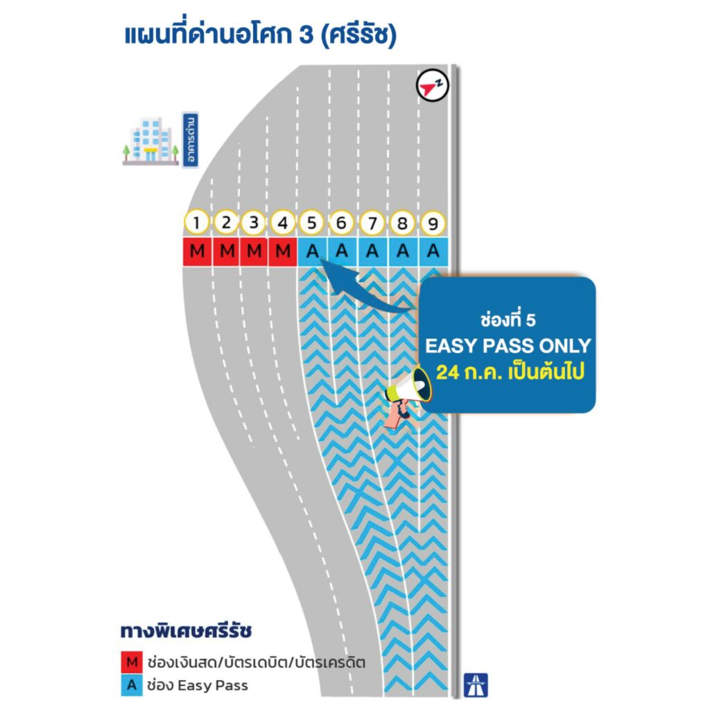 กทพ. เพิ่มช่องเก็บค่าผ่านทางพิเศษแบบอัตโนมัติ บนทางพิเศษเฉลิมมหานคร และทางพิเศษศรีรัช เริ่ม 24 ก.ค.67