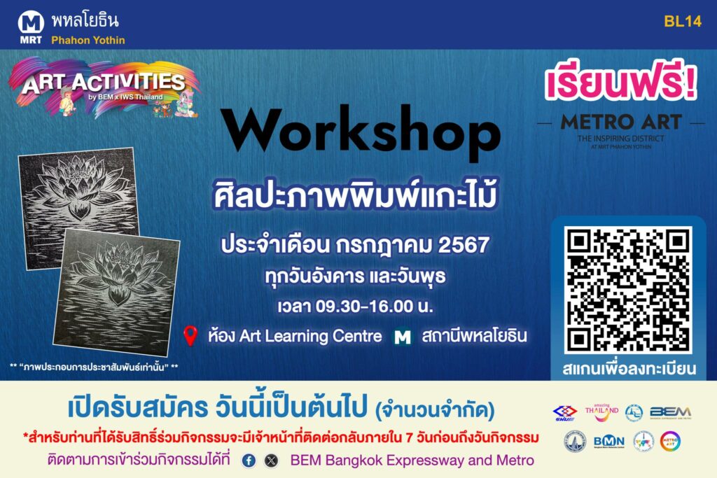 บริษัท ทางด่วนและรถไฟฟ้ากรุงเทพ จำกัด (มหาชน) เชิญสมัครเข้าร่วมกิจกรรม “Art Activities” Workshop ประจำเดือนกรกฏาคม ในหัวข้อ Workshop “ศิลปะภาพพิมพ์แกะไม้”