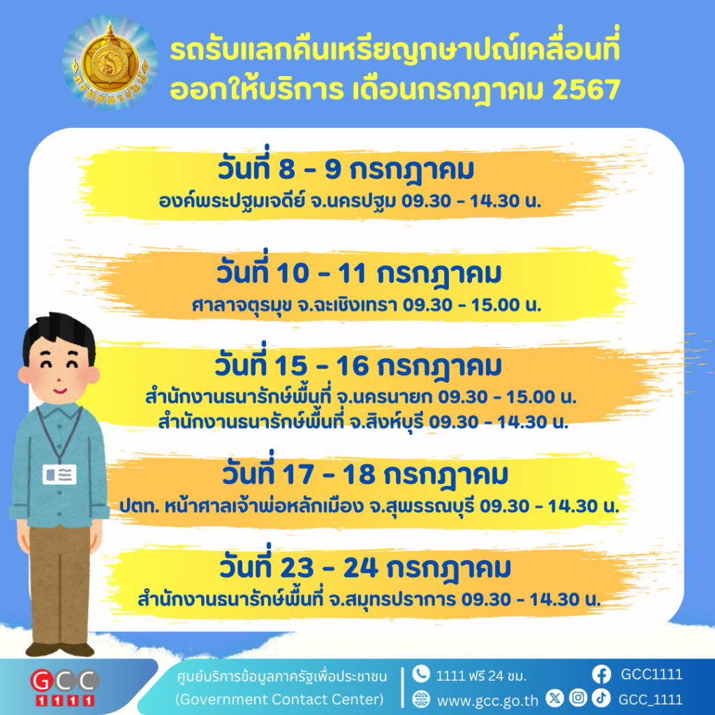 กรมธนารักษ์ จัดรถรับแลกคืนเหรียญกษาปณ์เคลื่อนที่ออกให้บริการ เดือนกรกฎาคม 2567