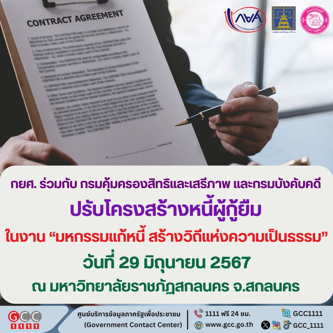 กองทุนเงินให้กู้ยืมเพื่อการศึกษา ร่วมกับ กรมคุ้มครองสิทธิและเสรีภาพ และกรมบังคับคดี ปรับโครงสร้างหนี้ผู้กู้ยืม ในงาน “มหกรรมแก้หนี้ สร้างวิถีแห่งความเป็นธรรม” วันเสาร์ที่ 29 มิถุนายน 2567 ณ มหาวิทยาลัยราชภัฏสกลนคร จังหวัดสกลนคร