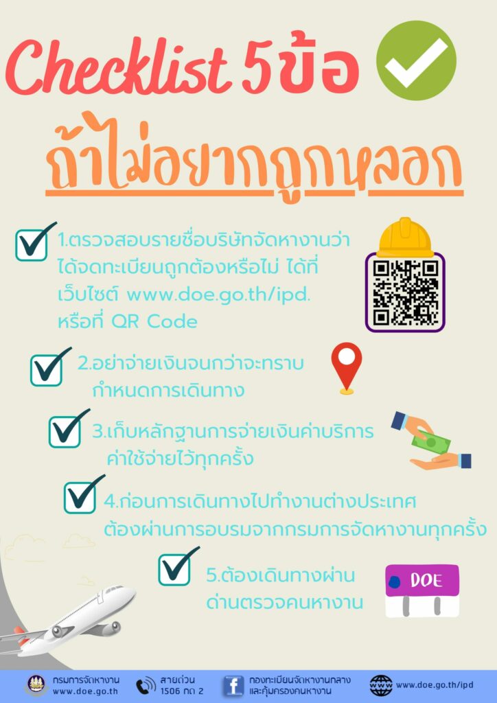 กรมการจัดหางาน แนะนำ Checklist 5 ข้อ ถ้าไม่อยากถูกหลอกไปทำงานต่างประเทศ