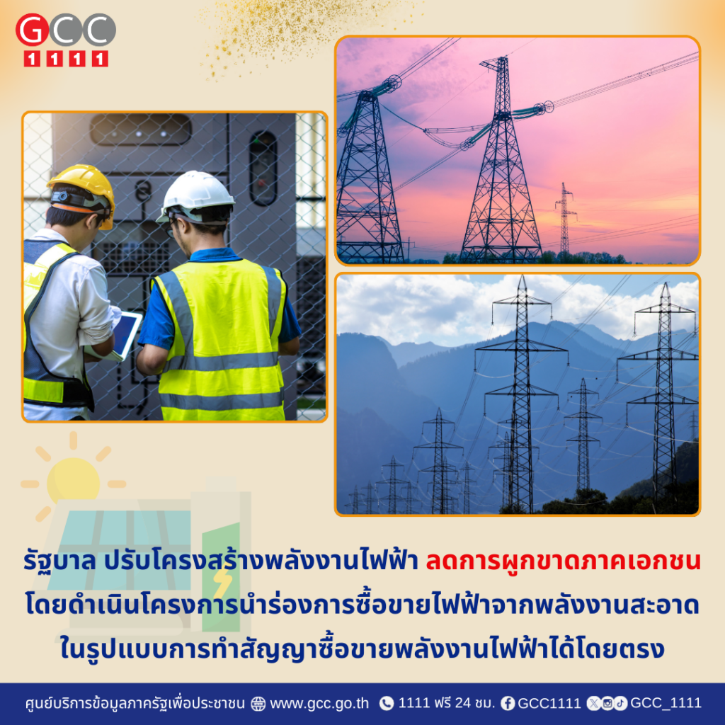 รัฐบาล ปรับโครงสร้างพลังงานไฟฟ้า ลดการผูกขาดภาคเอกชน เพื่อให้ราคาไฟฟ้าลดลง โดยดำเนินโครงการนำร่องการซื้อขายไฟฟ้าจากพลังงานสะอาด ในรูปแบบการทำสัญญาซื้อขายพลังงานไฟฟ้าได้โดยตรง (Direct PPA)