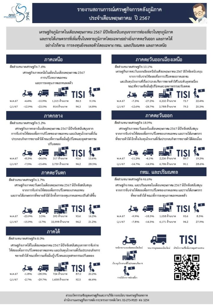 สำนักงานเศรษฐกิจการคลัง รายงานภาวะเศรษฐกิจการคลังภูมิภาคเดือนพฤษภาคม 2567