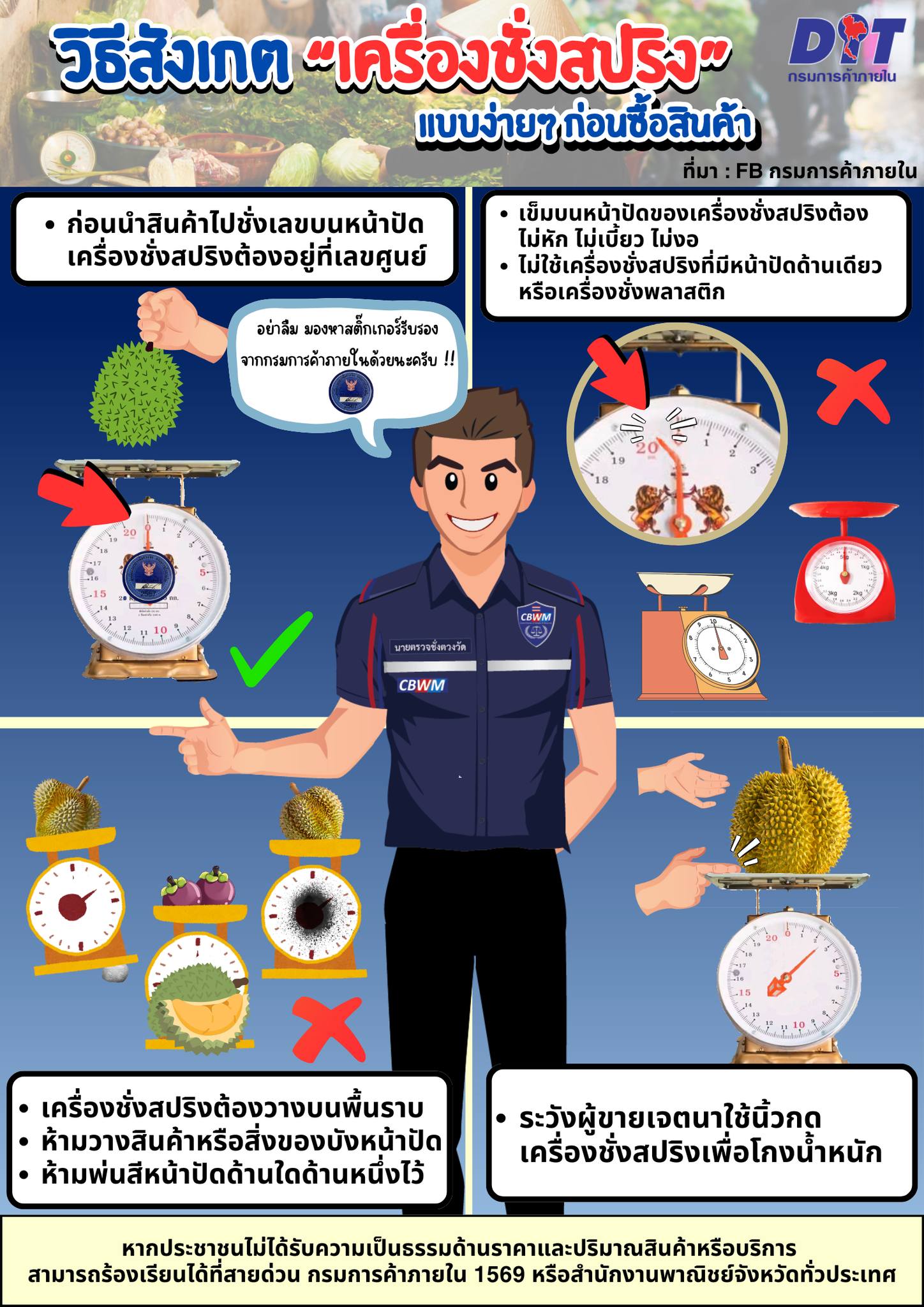 - ระวังผู้ขายเจตนาใช้นิ้วกดเครื่องชั่งสปริงเพื่อโกงน้ำหนัก