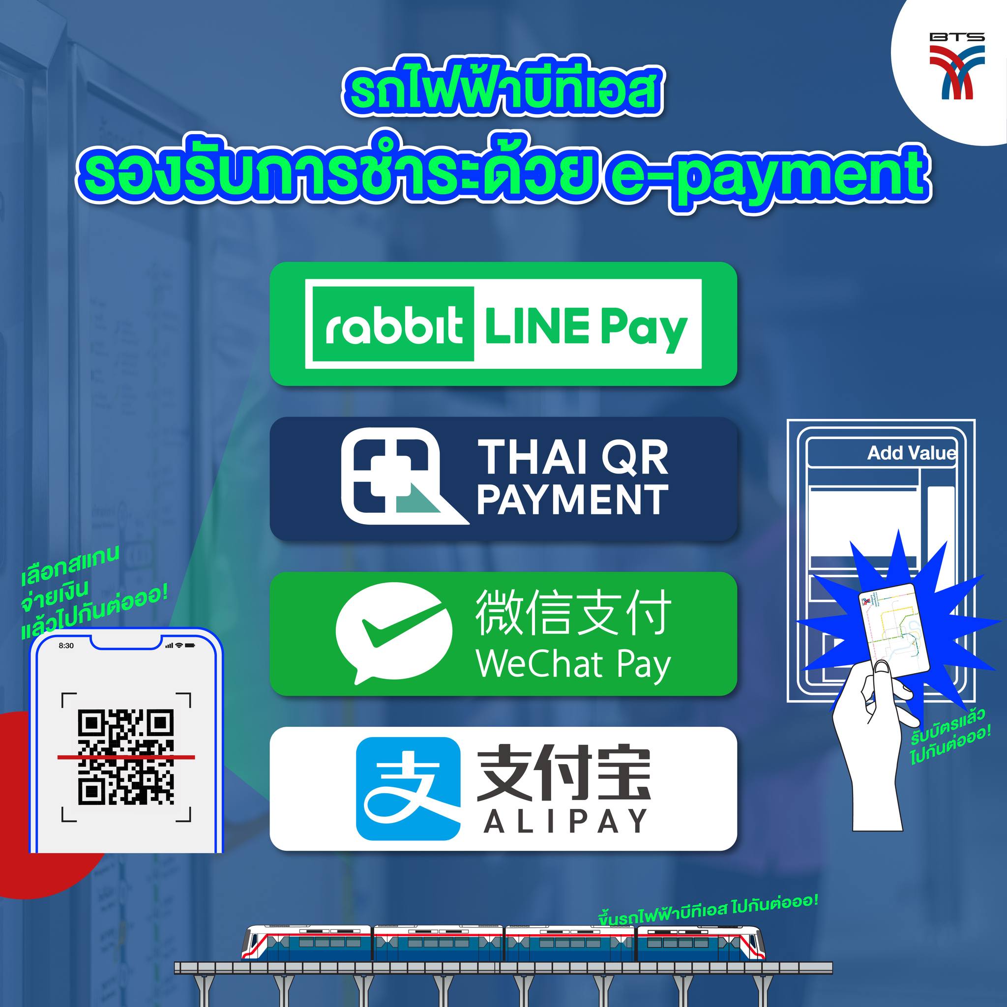• รถไฟฟ้าบีทีเอส แจ้งสามารถซื้อบัตรโดยสารรถไฟฟ้าบีทีเอสผ่านการชำระด้วย e-payment ได้ ดังนี้