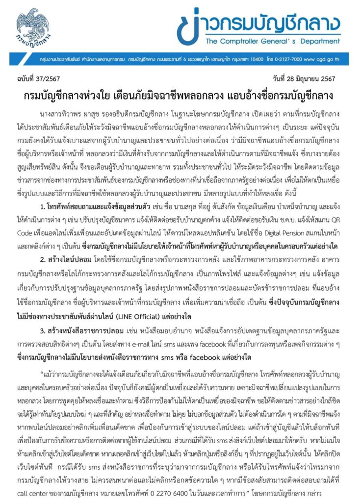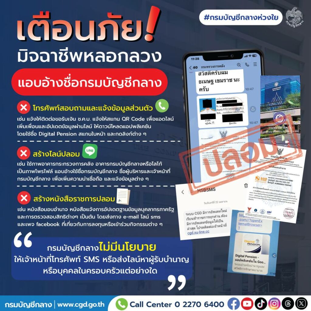 กรมบัญชีกลาง เตือนภัยมิจฉาชีพหลอกลวง แอบอ้างชื่อกรมบัญชีกลาง