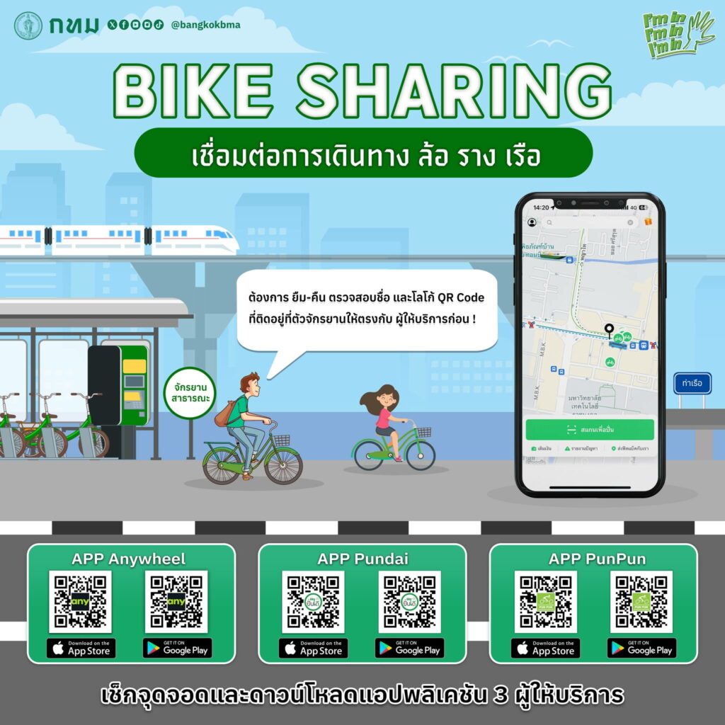 กรุงเทพมหานคร ชวนมา I’m in ปั่นจักรยาน BIKE SHARING กัน จักรยานสาธารณะ บริการให้เช่าใช้ปั่นในเมือง ช่วยให้การเดินทางสะดวกมากขึ้น