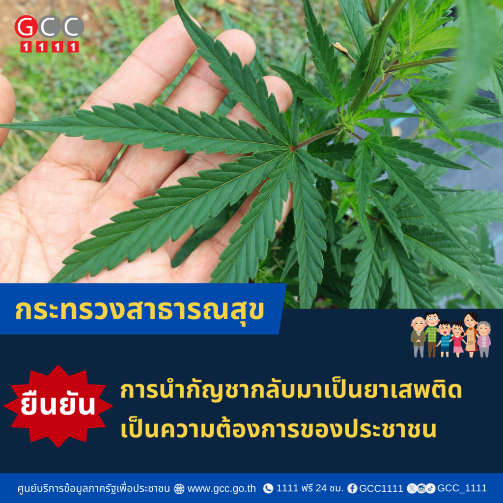 กระทรวงสาธารณสุข ยืนยัน การนำกัญชากลับมาเป็นยาเสพติดเป็นความต้องการของประชาชน