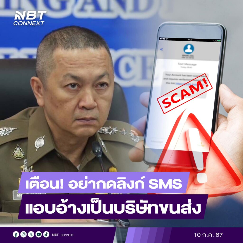 สำนักงานตำรวจแห่งชาติ เตือนภัยประชาชนอย่ากดลิงก์ SMS แอบอ้างเป็นบริษัทขนส่ง