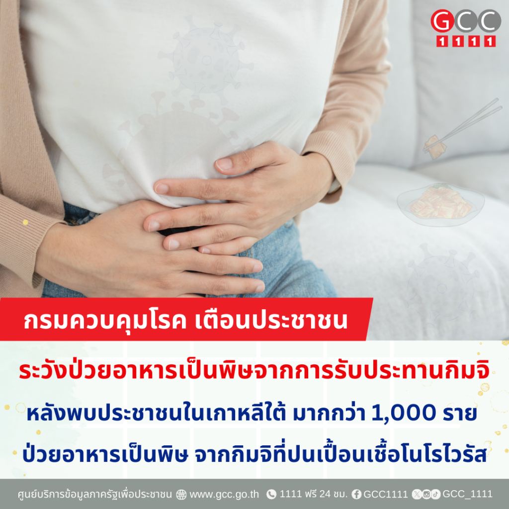 กรมควบคุมโรค เตือนประชาชน ระวังป่วยอาหารเป็นพิษจากการรับประทานกิมจิ หลังพบประชาชนในเกาหลีใต้มากกว่า 1,000 ราย ป่วยอาหารเป็นพิษจากกิมจิที่ปนเปื้อนเชื้อโนโรไวรัส การป้องกันขอให้เลือกซื้อจากแหล่งผลิตที่น่าเชื่อถือได้