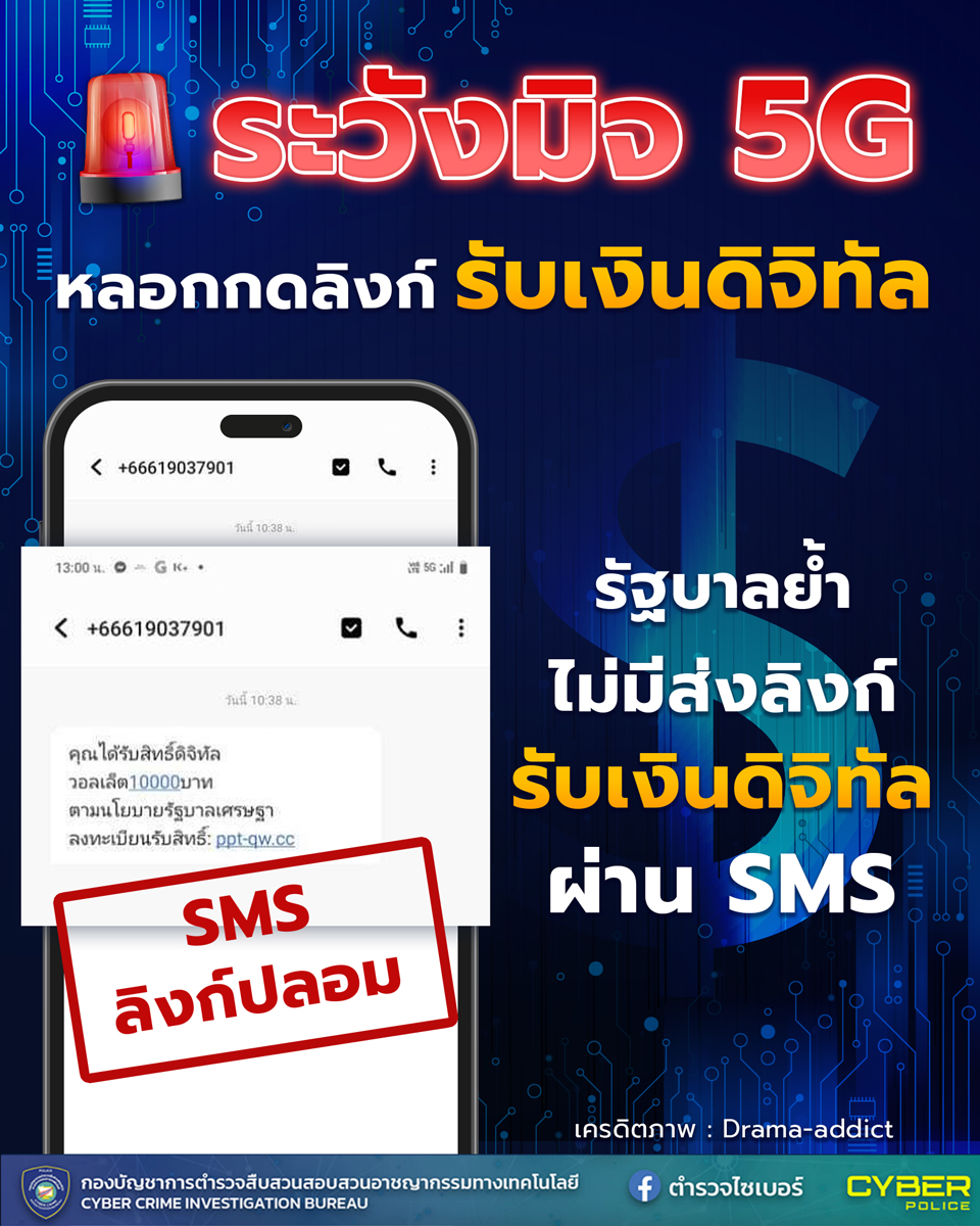 ตำรวจไซเบอร์ เตือนภัยระวังมิจฉาชีพ 5G หลอกกดลิงก์ รับเงินดิจิทัลและแนะนำวิธีป้องกัน