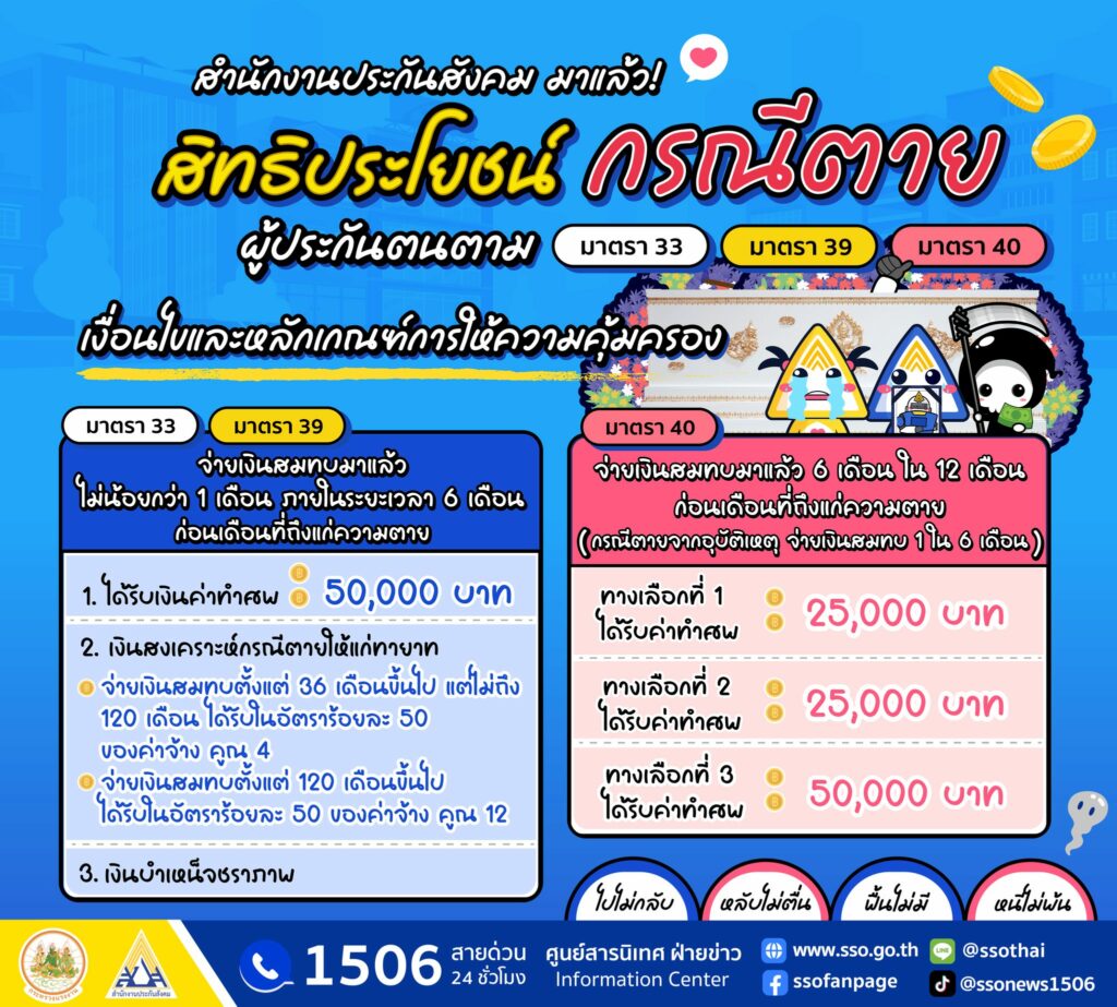 - ได้รับเงินค่าทำศพ จำนวน 50,000 บาท