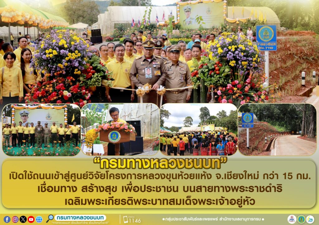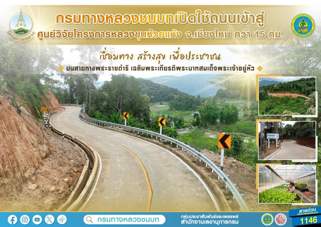 “กรมทางหลวงชนบท” เปิดใช้ถนนเข้าสู่ศูนย์วิจัยโครงการหลวงขุนห้วยแห้ง จ.เชียงใหม่ กว่า 15 กม. เชื่อมทาง สร้างสุข เพื่อประชาชน บนสายทางพระราชดำริ เฉลิมพระเกียรติพระบาทสมเด็จพระเจ้าอยู่หัว