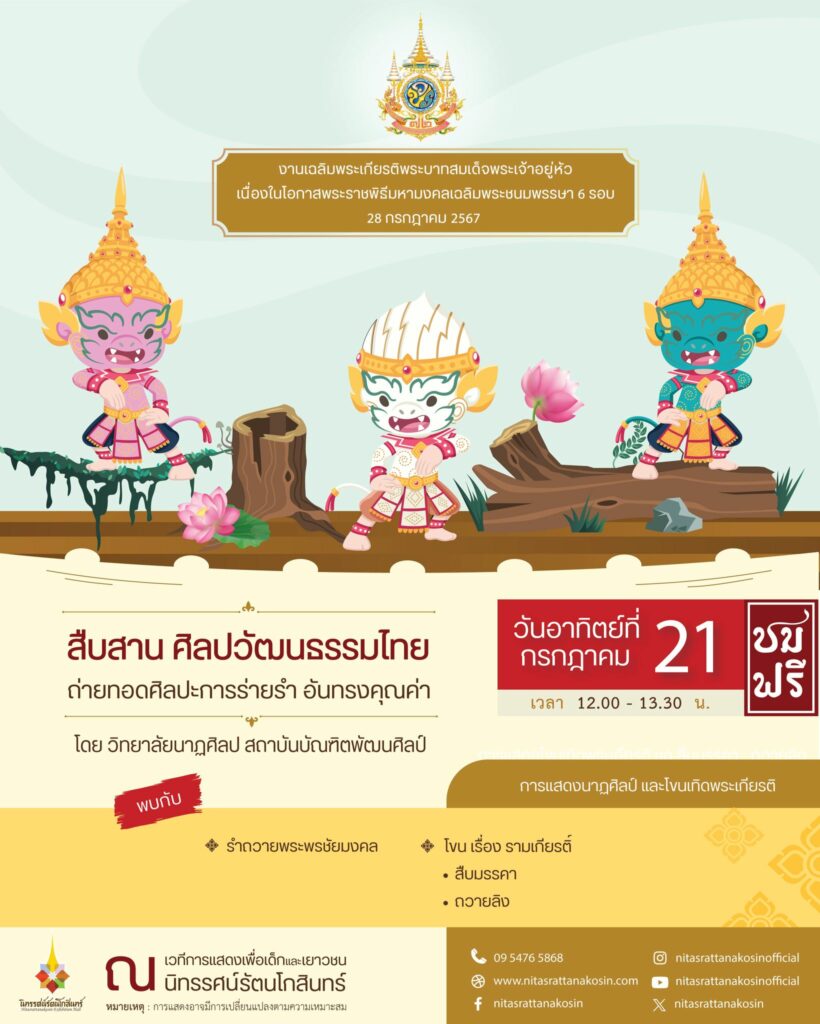นิทรรศน์รัตนโกสินทร์ เชิญชมเวทีการแสดงเพื่อเด็กและเยาวชน วันอาทิตย์ที่ 21 กรกฎาคม 2567