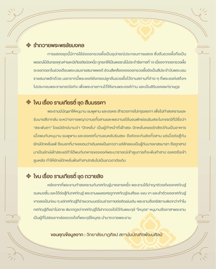 นิทรรศน์รัตนโกสินทร์ เชิญชมเวทีการแสดงเพื่อเด็กและเยาวชน โดย วิทยาลัยนาฏศิลป สถาบันบัณฑิตพัฒนศิลป์ วันอาทิตย์ที่ 21 กรกฎาคม 2567 ชมฟรี ทุกวันเสาร์ – อาทิตย์ เวลา 12.00 – 13.30 น. ณ เวทีการแสดงเพื่อเด็กและเยาวชน นิทรรศน์รัตนโกสินทร์