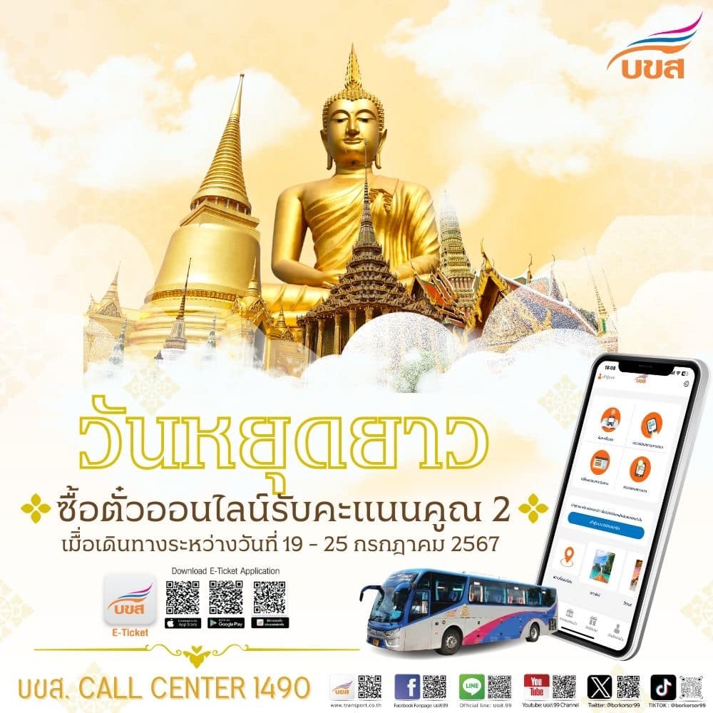 บขส. จัดโปรโมชั่นให้ สมาชิก บขส. Card “วันหยุดยาว อาสาฬหบูชา & เข้าพรรษา” 19 – 25 ก.ค. 67