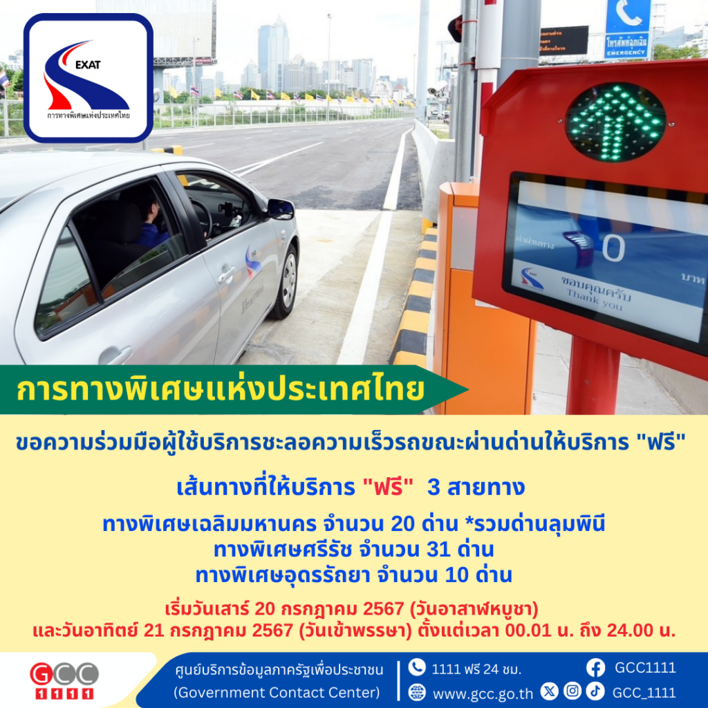 กทพ. ขอความร่วมมือผู้ใช้บริการชะลอความเร็วรถขณะผ่านด่านให้บริการ “ฟรี” เพื่อความปลอดภัยของตัวท่านเองและเพื่อนร่วมทาง พร้อมตรวจสอบเส้นทางที่ให้บริการ “ฟรี” ก่อนเดินทาง