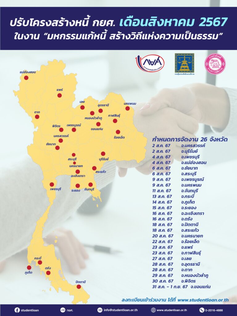 กองทุนเงินให้กู้ยืมเพื่อการศึกษา ขอเชิญผู้กู้ยืมเข้าร่วมงานปรับโครงสร้างหนี้ต่างจังหวัด เดือนสิงหาคม 2567