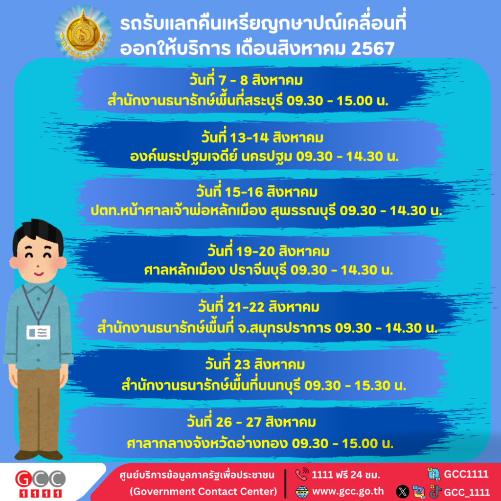 กรมธนารักษ์ จัดรถรับแลกคืนเหรียญกษาปณ์เคลื่อนที่ออกให้บริการ เดือนสิงหาคม 2567