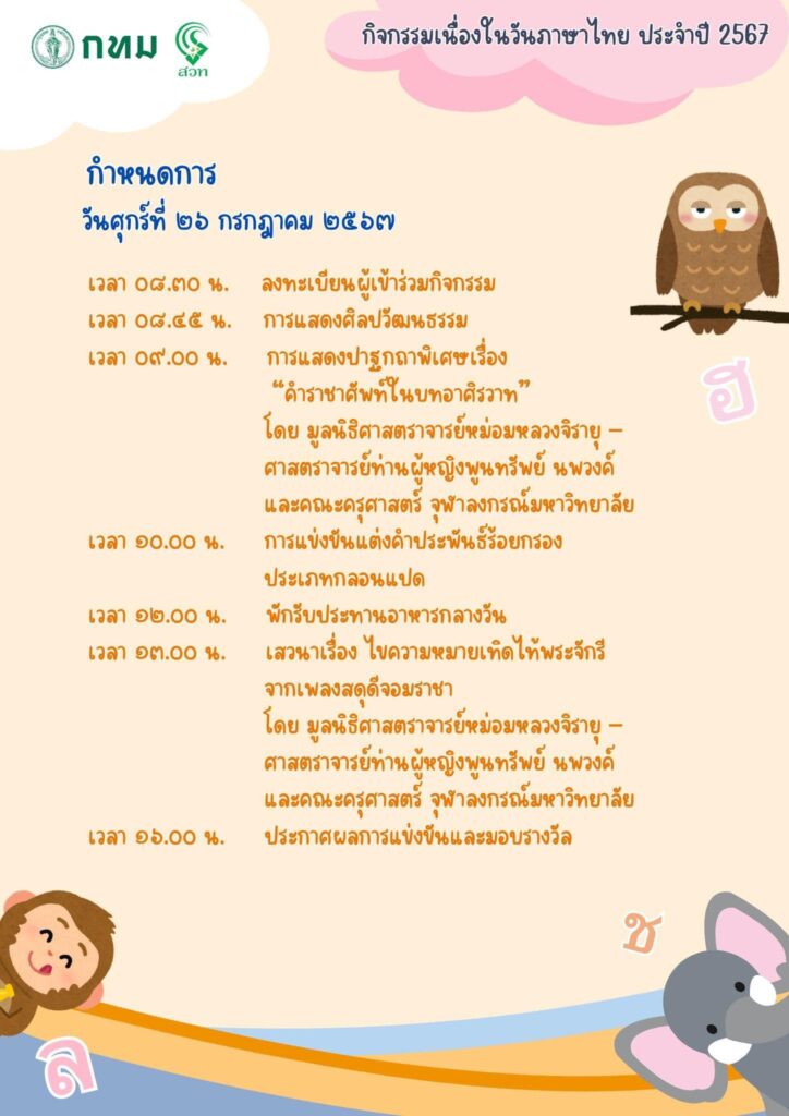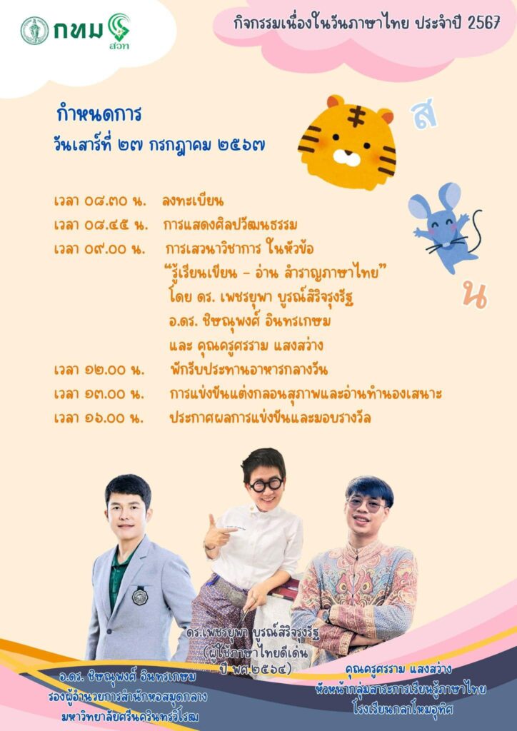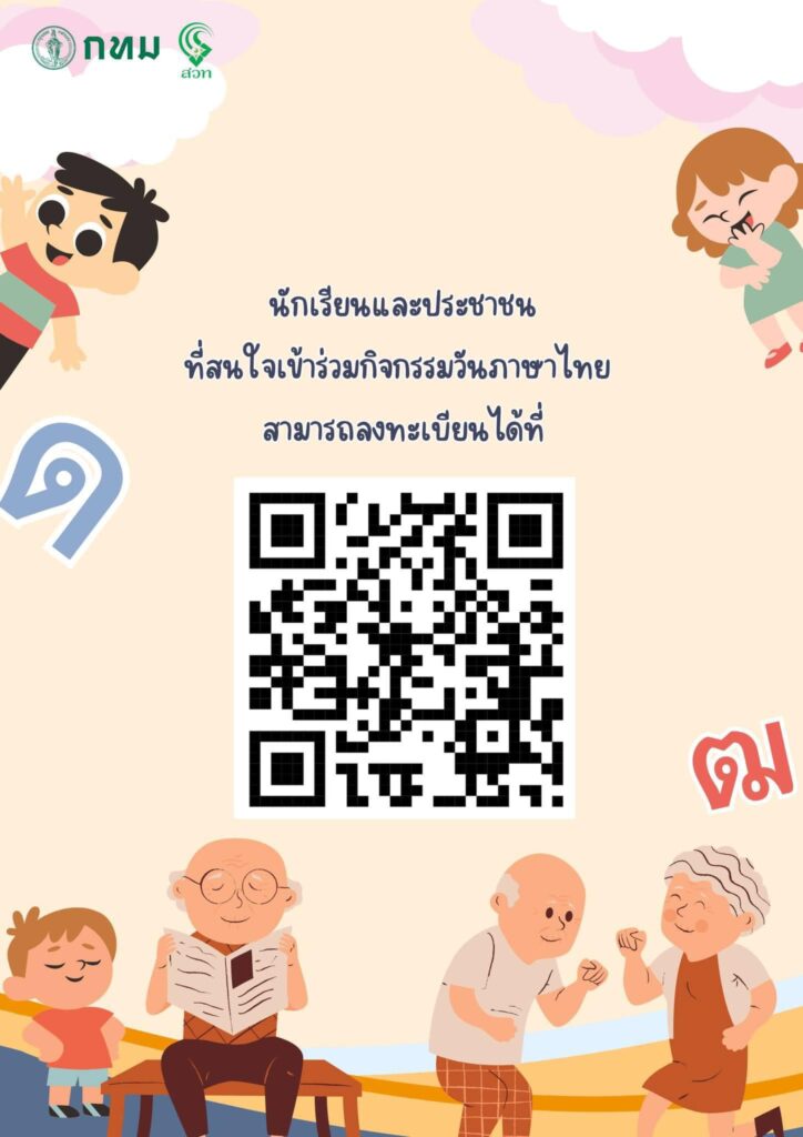 - สนใจเข้าร่วมงานวันภาษาไทย สามารถลงทะเบียนได้ที่ https://shorturl.asia/aIVoi