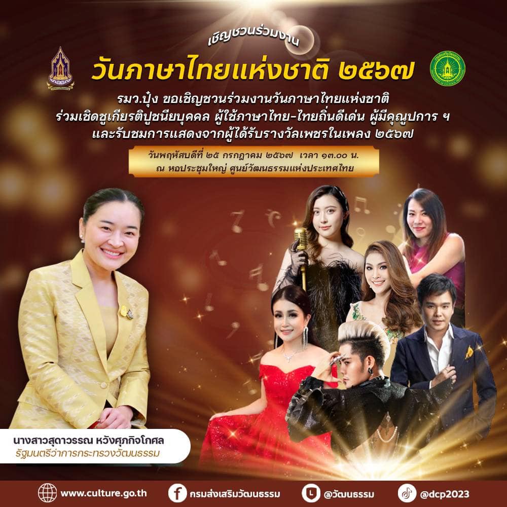 กรมส่งเสริมวัฒนธรรม ขอเชิญชวนร่วมงาน วันภาษาไทยแห่งชาติ ประจำปี 2567 ข่าวสารกิจกรรม กรมส่งเสริมวัฒนธรรม ขอเชิญชวนร่วมงาน วันภาษาไทยแห่งชาติ ประจำปี 2567 กรมส่งเสริมวัฒนธรรม ขอเชิญชวนร่วมงาน วันภาษาไทยแห่งชาติ ประจำปี 2567 เนื่องในวันภาษาไทยแห่งชาติ ประจำปี 2567 ได้จัดงานพิธีมอบรางวัล เพื่อร่วมเชิดชูเกียรติปูชนียบุคคล ผู้ใช้ภาษาไทย – ไทยถิ่นดีเด่น และผู้มีคุณูปการต่อการใช้ภาษาไทย พร้อมรับชมการแสดงจากผู้ได้รับรางวัลเพชรในเพลง 2567 วันพฤหัสบดีที่ 25 กรกฎาคม 2567 เวลา 13.30 น. เป็นต้นไป ณ หอประชุมใหญ่ ศูนย์วัฒนธรรมแห่งประเทศไทย ที่มา : https://citly.me/k4ZYA Post Views: 31 FacebookFacebookXTwitterLINELine