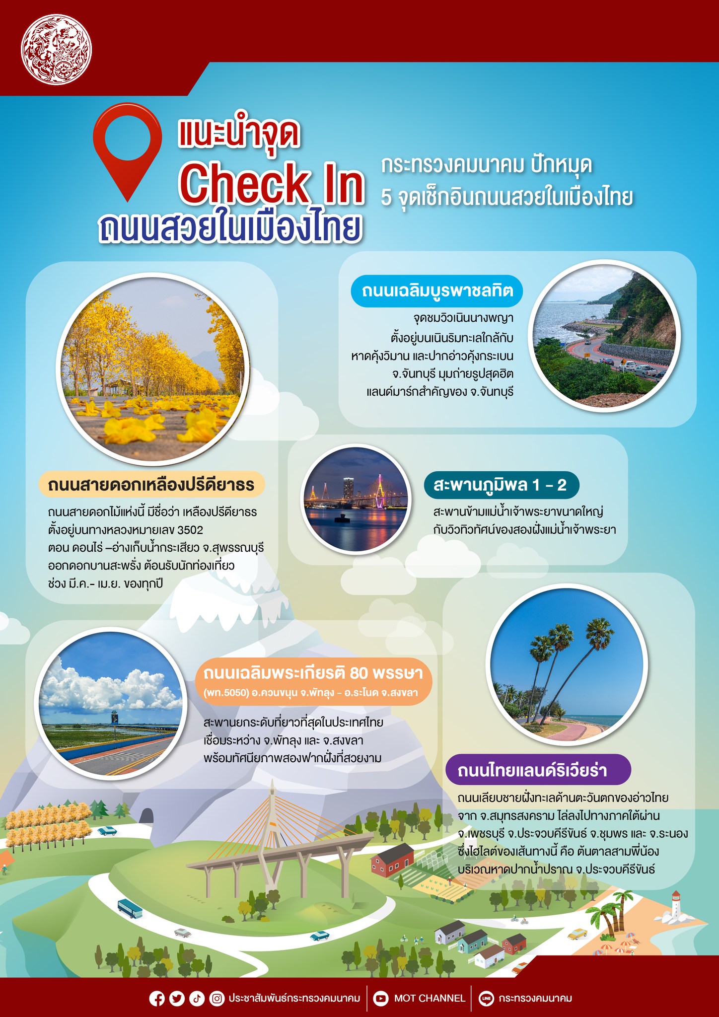 กระทรวงคมนาคม แนะนำ  5 จุดเช็คกอินถนนสวยในเมืองไทย