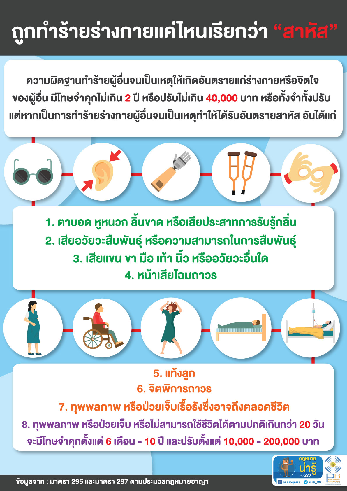 - กระทรวงยุติธรรม แจ้งเตือนถูกทำร้ายร่างกายแค่ไหนเรียกว่า “สาหัส”