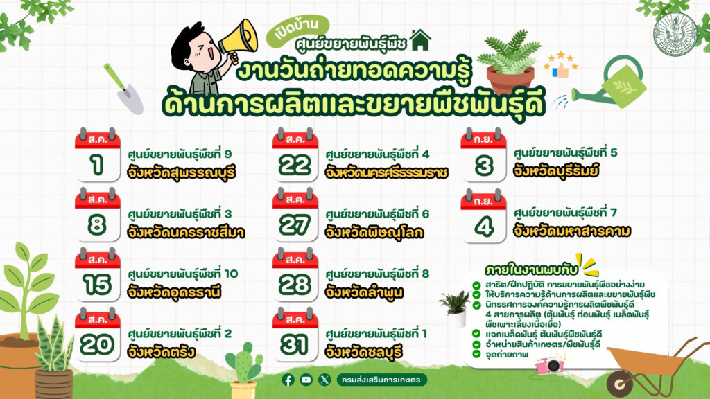 กรมส่งเสริมการเกษตร แจ้งปฏิทิน เปิดบ้านศูนย์ขยายพันธุ์พืช งานวันถ่ายทอดความรู้ด้านการผลิตและขยายพืชพันธุ์ดี
