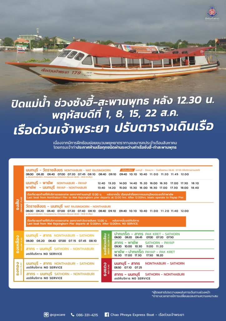 - หมายเหตุ : งดให้บริการเดินเรือธงทอง เรือธงเหลือง เรือปรับอากาศธงแดง