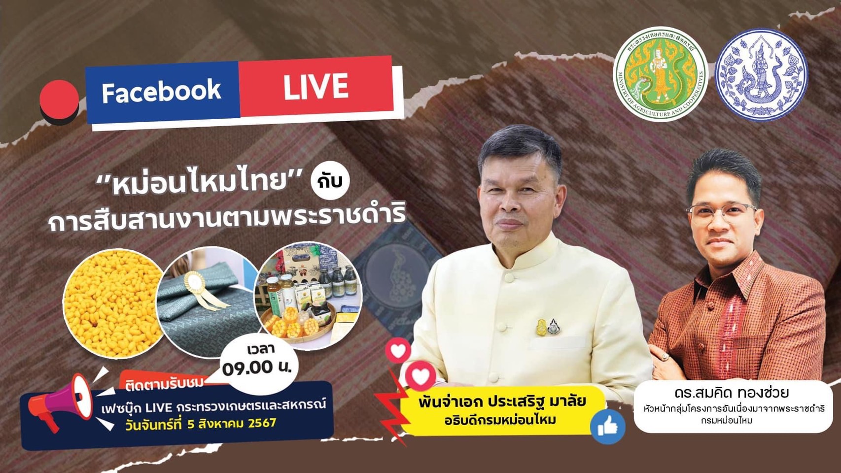 กรมหม่อนไหม จัด Live รายการ อัปเดต..เกษตรนำ ในหัวข้อ หม่อนไหมไทย กับการสืบสานงานตามพระราชดำริ