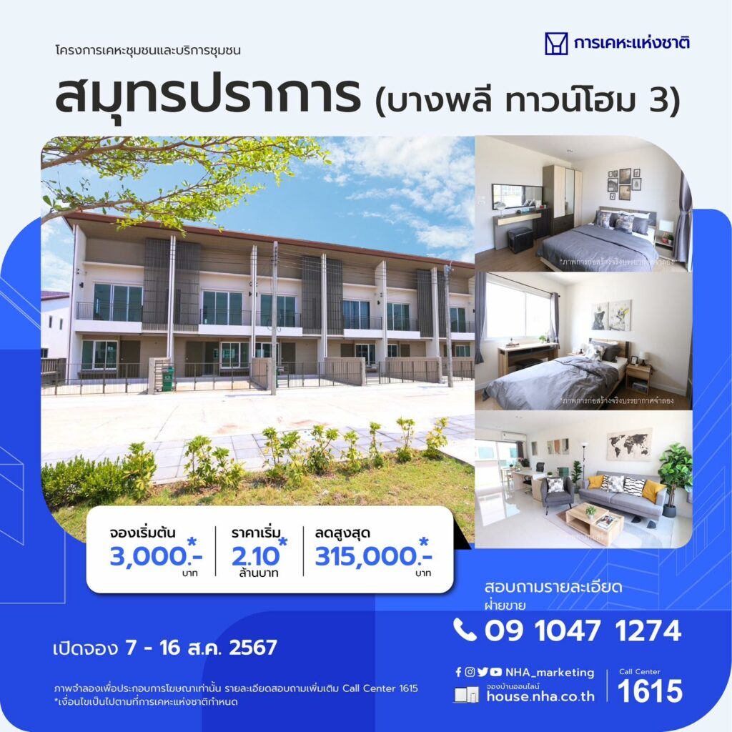 การเคหะแห่งชาติ เปิดจองโครงการเคหะชุมชนและบริการชุมชนสมุทรปราการ (บางพลี ทาวน์โฮม 3)