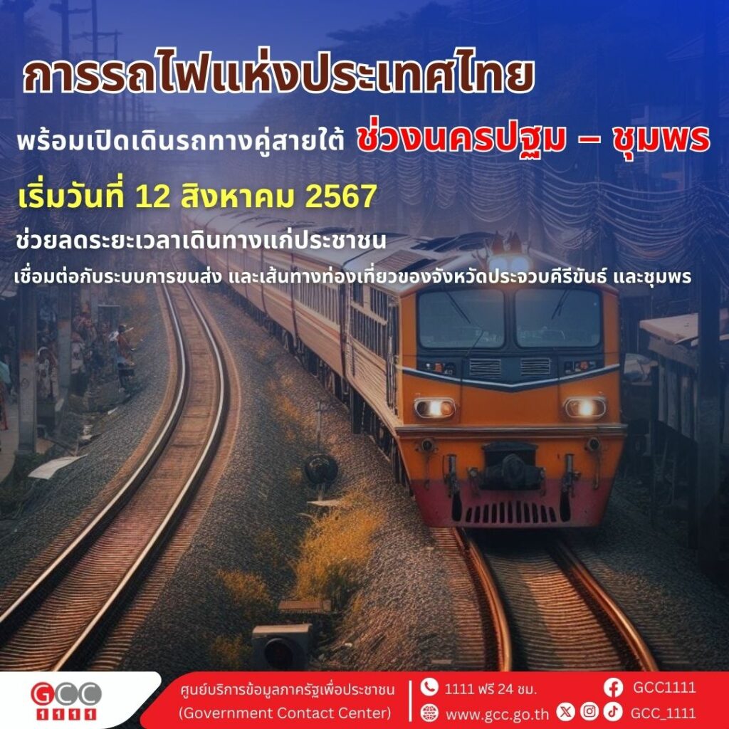 รฟท. พร้อมเปิดเดินรถทางคู่สายใต้ 421 กม. จากนครปฐมถึงชุมพร เริ่มวันที่ 12 สิงหาคม 2567