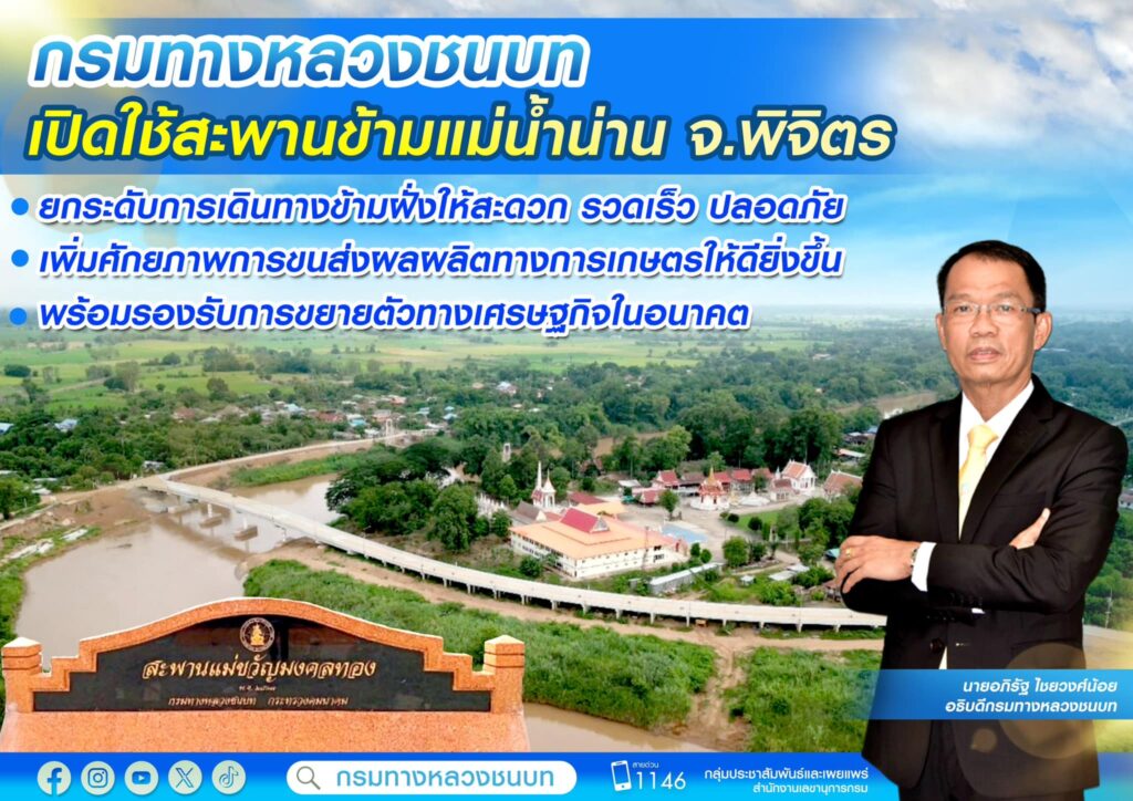 กรมทางหลวงชนบท เปิดใช้สะพานข้ามแม่น้ำน่าน จ.พิจิตร ยกระดับการเดินทางข้ามฝั่งให้สะดวก รวดเร็ว