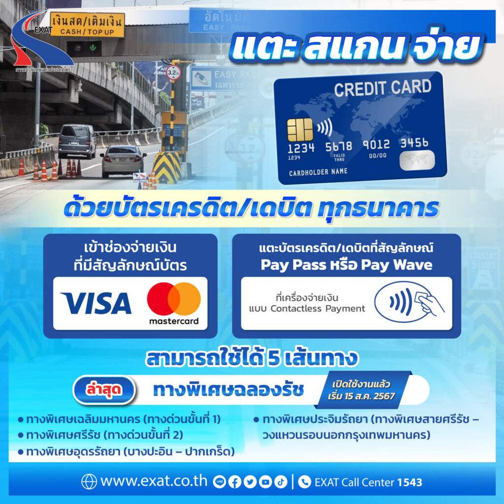 การทางพิเศษแห่งประเทศไทย ได้เปิดให้บริการระบบชำระค่าผ่านทางด้วยเทคโนโลยี EMV Contactless ในสายทางพิเศษเฉลิมมหานคร คือ ทางพิเศษศรีรัช (ทางด่วนขั้นที่ 1) ทางพิเศษประจิมรัถยา (ทางด่วนขั้นที่ 2) ทางพิเศษสายศรีรัช – วงแหวนรอบนอกกรุงเทพมหานคร ทางพิเศษอุดรรัถยา (บางปะอิน – ปากเกร็ด) และในวันที่ 15 สิงหาคม 2567 ได้เปิดให้บริการเพิ่มอีก 1 สายทาง คือ ทางพิเศษฉลองรัช เพื่อเป็นทางเลือกในการชำระค่าผ่านทาง เพียงแค่ขับรถเข้าช่องชำระค่าผ่านทางด้วยเงินสด ลดกระจก และแตะบัตรที่มีสัญลักษณ์ Contactless ซึ่งเป็นรูปแบบการชำระเงินที่เป็นมาตรฐานระดับสากล สะดวกรวดเร็ว และลดความแออัดของปริมาณรถสะสมบริเวณหน้าด่านเก็บค่าผ่านทางพิเศษ
