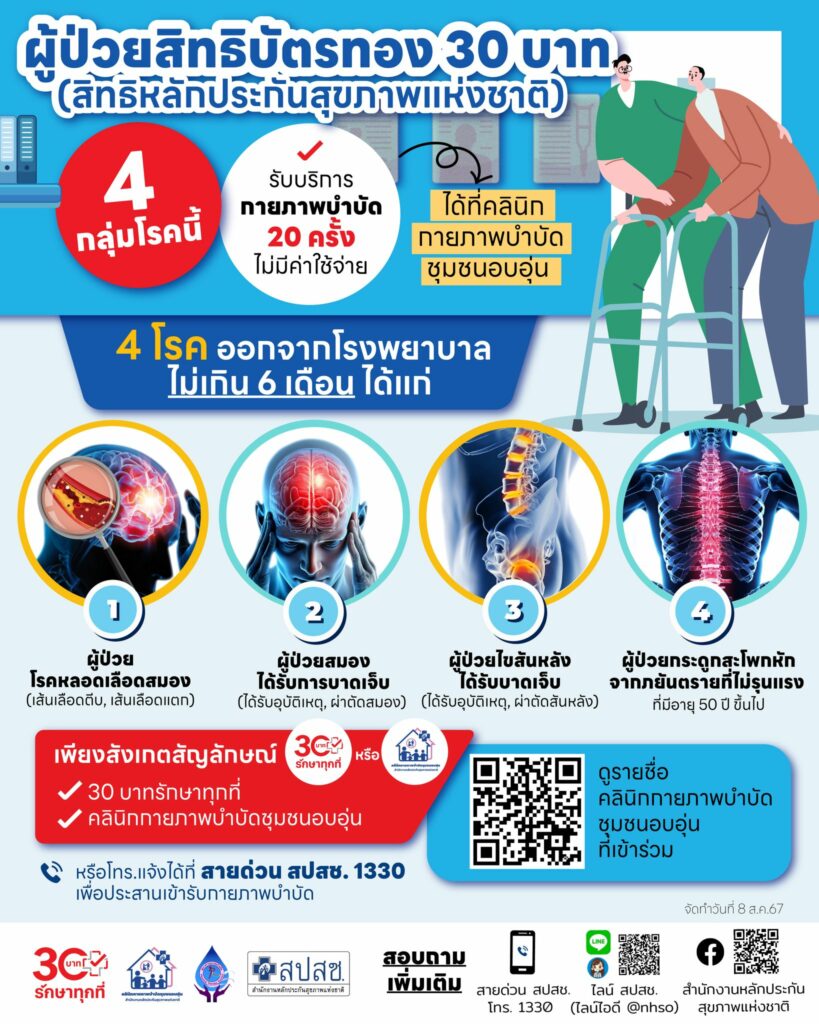 หรือ โทร.แจ้งได้ที่ สายด่วน สปสช. 1330 เพื่อประสานเข้ารับกายภาพบำบัด