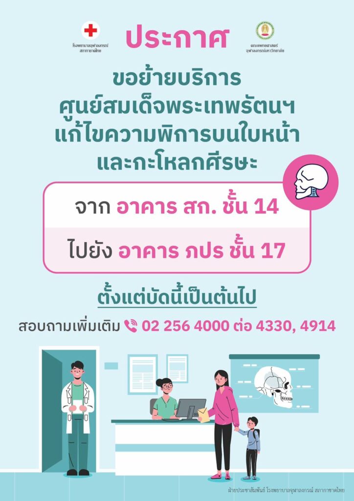 โรงพยาบาลจุฬาลงกรณ์ แจ้งการย้ายบริการศูนย์สมเด็จพระเทพรัตนฯ จากอาคาร สก. ชั้น 14 ไปยัง อาคาร ภปร ชั้น 17 ข่าวสารกิจกรรม โรงพยาบาลจุฬาลงกรณ์ แจ้งการย้ายบริการศูนย์สมเด็จพระเทพรัตนฯ จากอาคาร สก. ชั้น 14 ไปยัง อาคาร ภปร ชั้น 17 โรงพยาบาลจุฬาลงกรณ์ สภากาชาดไทย แจ้งการย้ายบริการศูนย์สมเด็จพระเทพรัตนฯ แก้ไขความพิการบนใบหน้าและกะโหลกศีรษะ จากอาคาร สก. ชั้น 14 ไปยัง อาคาร ภปร ชั้น 17 ตั้งแต่บัดนี้เป็นต้นไป สอบถามเพิ่มเติม โทร. 0 2256 4000 ต่อ 4330, 4914 ที่มา : https://citly.me/15hVt Post Views: 30 FacebookFacebookXTwitterLINELine