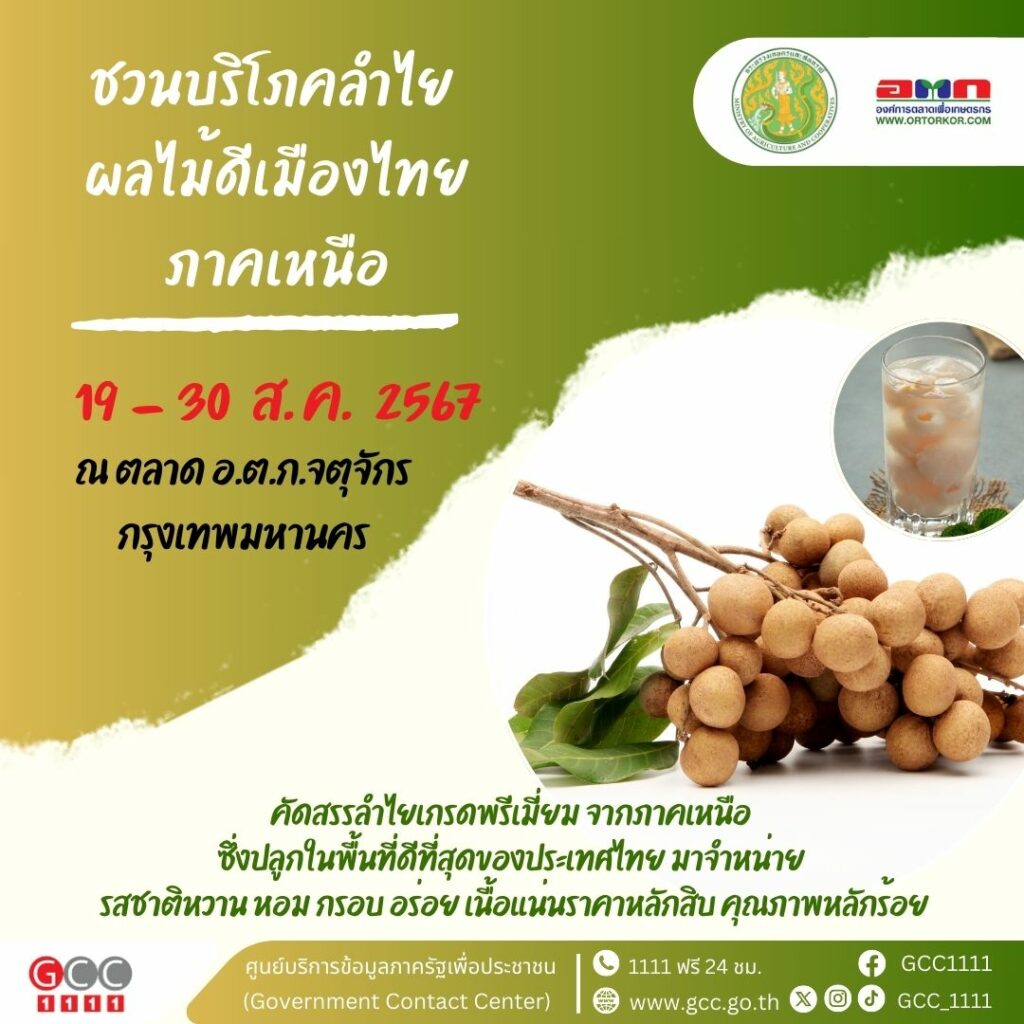 อ.ต.ก. จัดกิจกรรม “ชวนบริโภคลำไย ผลไม้ดีเมืองไทยภาคเหนือ” วันที่ 19 – 30 สิงหาคม 2567 ข่าวสารกิจกรรม อ.ต.ก. จัดกิจกรรม “ชวนบริโภคลำไย ผลไม้ดีเมืองไทยภาคเหนือ” วันที่ 19 – 30 สิงหาคม 2567 องค์การตลาดเพื่อเกษตรกร จัดกิจกรรม “ชวนบริโภคลำไย ผลไม้ดีเมืองไทยภาคเหนือ” ระหว่างวันที่ 19 – 30 สิงหาคม 2567 ณ ตลาด อ.ต.ก.จตุจักร กรุงเทพมหานคร ได้คัดสรรลำไยเกรดพรีเมี่ยม จากภาคเหนือ ซึ่งปลูกในพื้นที่ดีที่สุดของประเทศไทย มาจำหน่าย รสชาติหวาน หอม กรอบ อร่อย เนื้อแน่นราคาหลักสิบ คุณภาพหลักร้อย ที่มา : https://citly.me/2XZTQ Post Views: 30 FacebookFacebookXTwitterLINELine