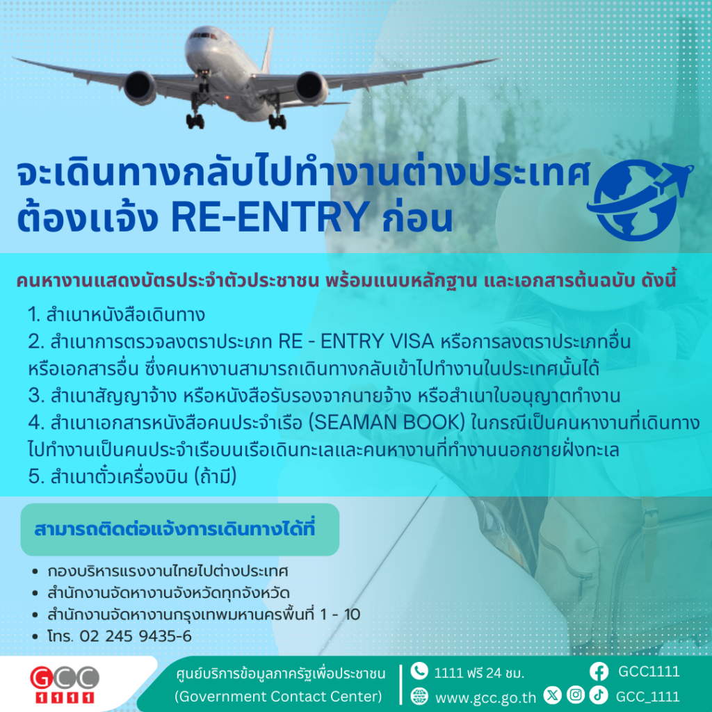 กรมการจัดหางาน เตือนจะเดินทางกลับไปทำงานต่างประเทศต้องเเจ้ง RE-ENTRY ก่อน
