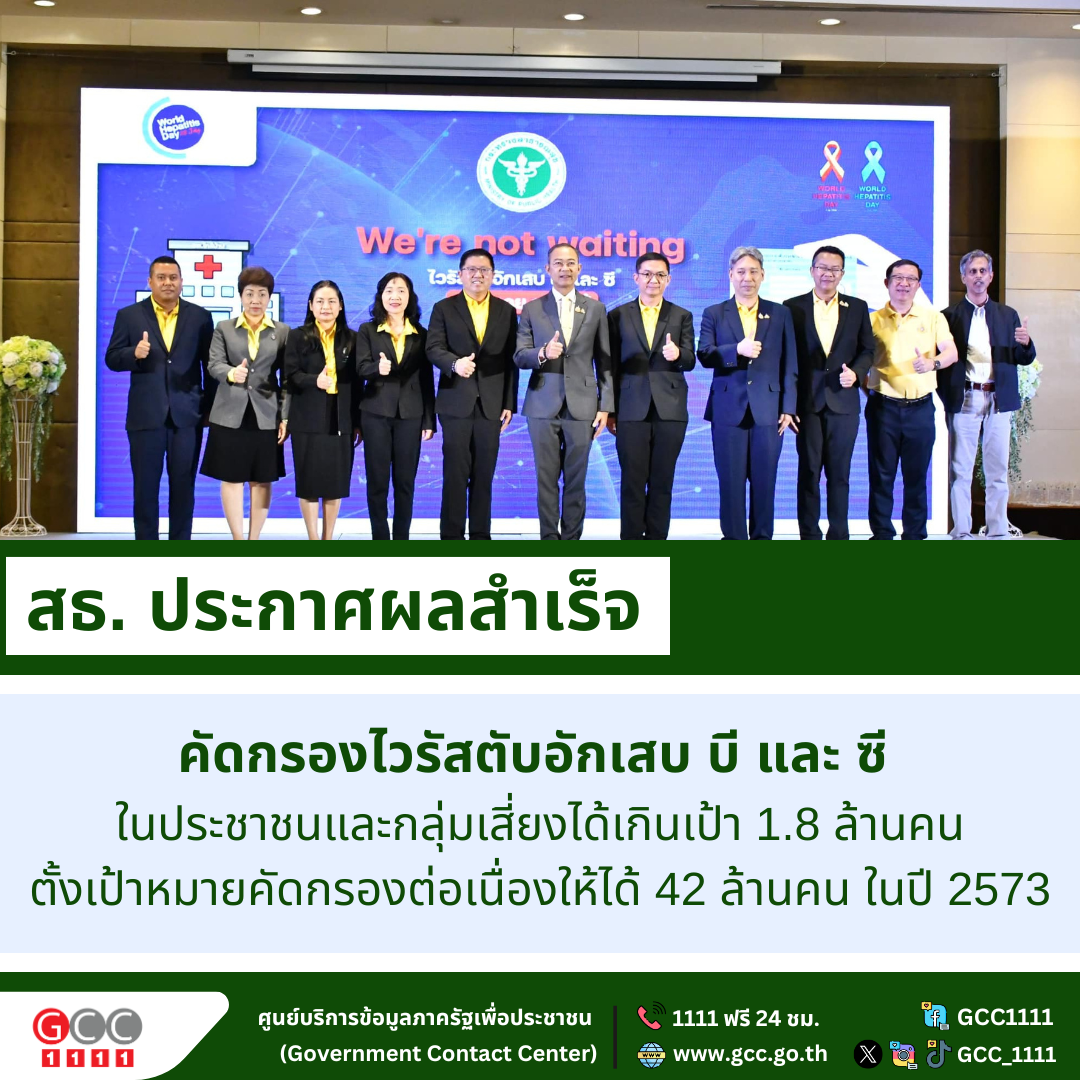 สธ. ประกาศผลสำเร็จการคัดกรองไวรัสตับอักเสบ บี และ ซี ในประชาชนและกลุ่มเสี่ยงได้เกินเป้า 1.8 ล้านคน