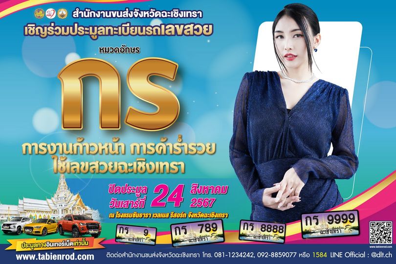 สำนักงานขนส่งจังหวัดฉะเชิงเทรา จัดงานประมูลทะเบียนรถเลขสวย หมวดอักษร กร ในวันเสาร์ที่ 24 ส.ค.67