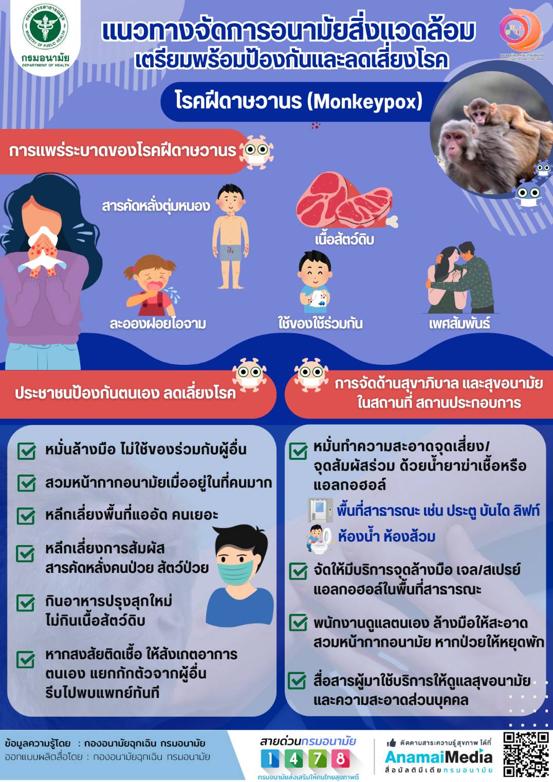 กรมอนามัย แนะนำแนวทางการเตรียมพร้อมป้องกันและลดเสี่ยงโรค”โรคฝีดาษวานร (Monkeypox)”