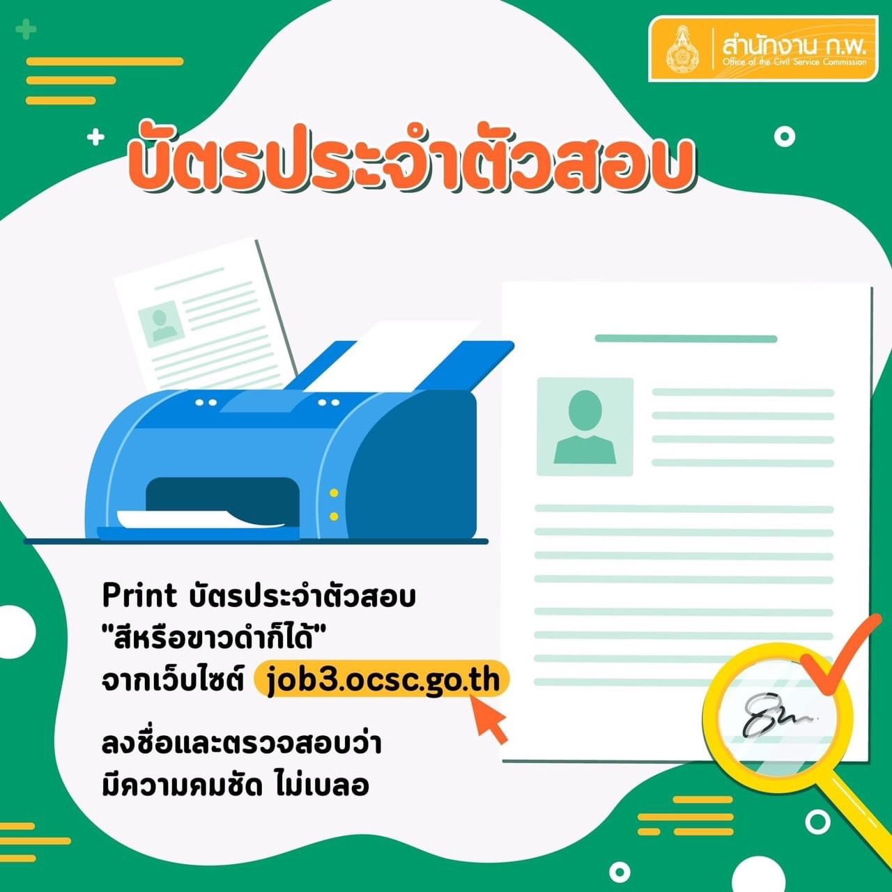 - Print บัตรประจําตัวสอบ “สีหรือขาวดําก็ได้” จากเว็บไซต์ job3.ocsc.go.th