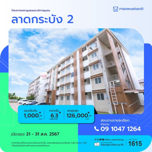 การเคหะแห่งชาติ เปิดจองโครงการเคหะชุมชนและบริการชุมชนลาดกระบัง 2