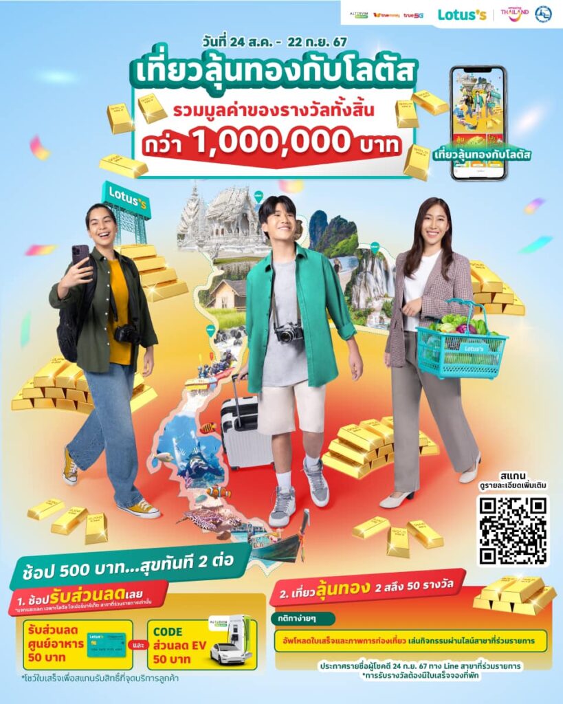 ททท. เชิญร่วมกิจกรรม “เที่ยวลุ้นทองกับโลตัส” ตั้งแต่บัดนี้ – 22 กันยายน 2567