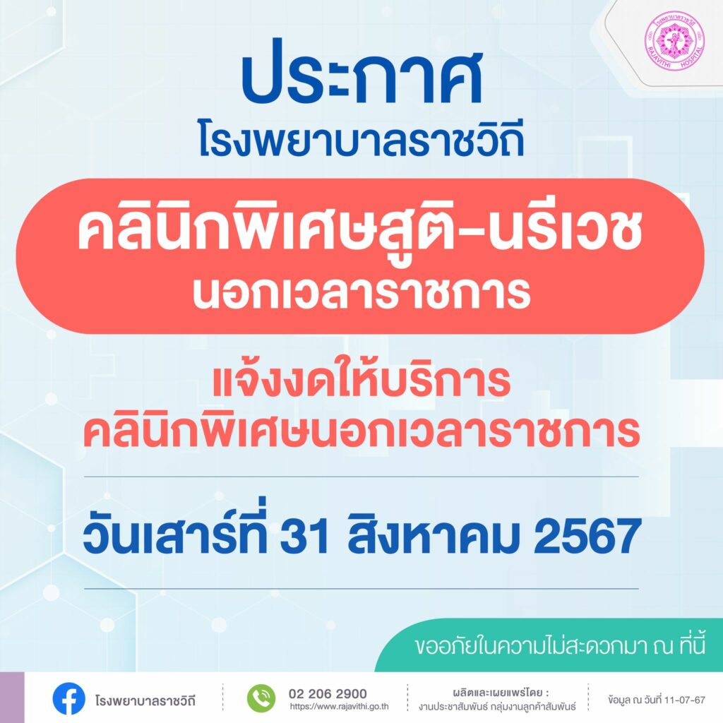 โรงพยาบาลราชวิถี แจ้ง “คลินิกพิเศษสูติ-นรีเวช นอกเวลาราชการ” งดให้บริการคลินิกพิเศษนอกเวลาราชการ ข่าวสารกิจกรรม โรงพยาบาลราชวิถี แจ้ง “คลินิกพิเศษสูติ-นรีเวช นอกเวลาราชการ” งดให้บริการคลินิกพิเศษนอกเวลาราชการ โรงพยาบาลราชวิถี กรมการแพทย์ แจ้ง “คลินิกพิเศษสูติ-นรีเวช นอกเวลาราชการ” งดให้บริการคลินิกพิเศษนอกเวลาราชการ วันเสาร์ที่ 31 สิงหาคม 2567 ที่มา : https://citly.me/JFUKd Post Views: 19 FacebookFacebookXTwitterLINELine